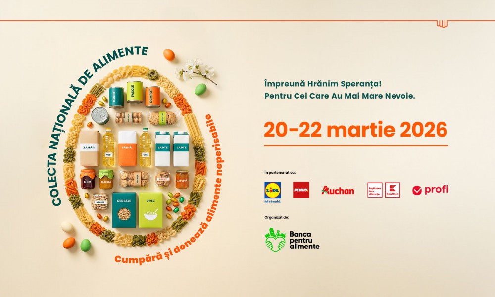 Federația Băncilor pentru Alimente din România - FBAR invită publicul să se alăture ediției de primăvară a Colectei Naționale de Alimente, unul dintre cele mai mari exerciții de solidaritate la nivel național în sprijinul comunităților vulnerabile. Ajunsă la cea de-a 14-a ediție, campania se va desfășura în perioada 20 - 22 martie, simultan în 1.154 de magazine partenere din întreaga țară.