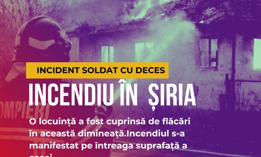 Un incendiu a izbucnit în jurul orei 04:45 la o locuință din localitatea Șiria. La sosirea echipajelor, focul se manifesta generalizat, pe aproximativ 80 de metri pătrați.