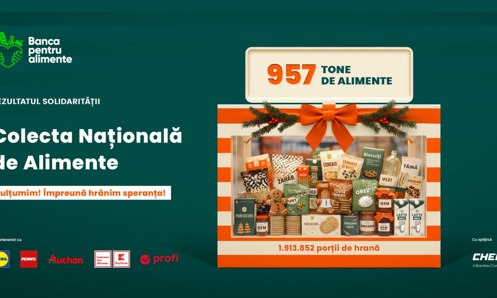 În cele trei zile de campanie, românii au răspuns apelului la solidaritate cu o generozitate care confirmă faptul că spiritul sărbătorilor poate însemna, înainte de toate, grijă față de cei mai vulnerabili. Au fost donate 957 de tone de alimente neperisabile, echivalentul a peste 1,9 milioane de porții de hrană, care vor ajunge în perioada următoare, prin rețeaua Băncilor și 441 ONG-uri partenere, la peste 130.000 persoane vulnerabile din întreaga țară.