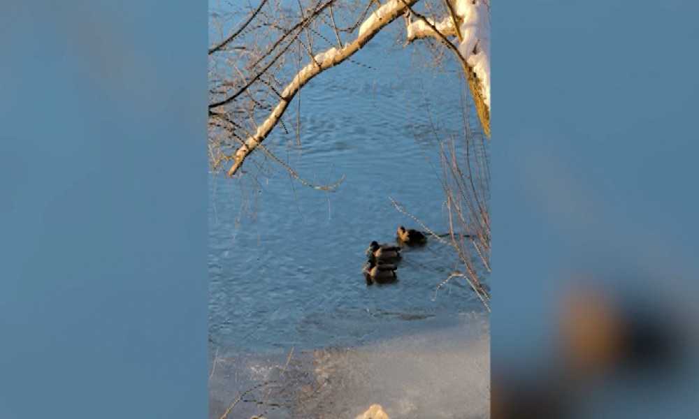 Gerul a înghețat lacul din Parcul Natural Lunca Mureșului, iar lebedele, rațele și lișițele se adună pe puținele ochiuri de apă rămase libere. Pentru a supraviețui, păsările sunt nevoite să înoate aproape continuu, ca apa să nu înghețe complet.